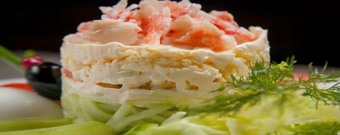 Популярность салата можно определить не только по количеству людей, любящих и знающих его, но ещё и по вариациям приготовления. В этом смысле салат с крабовыми