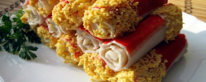 Блюда из крабовых палочек давно прочно обосновались в рационе у россиян. Из них можно приготовить не только знаменитый салат, но и разнообразные закуски.