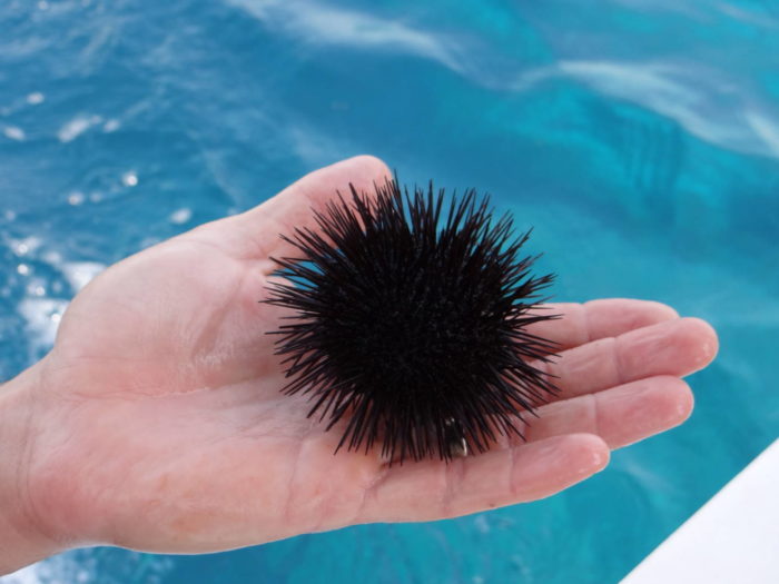 Процесс ловли диковинных морепродуктов очень сложный: важно не повредить колючки, так как ежик должен остаться живым, таким образом он дольше сохранится. Поэтому водолазы собирают их вручную. Это трудоемкая работа, которая требует слаженности действий всей команды. Водолаз погружается на дно моря, собирает иглокожих, поднимает их на поверхность, и далее улов транспортируют на берег.