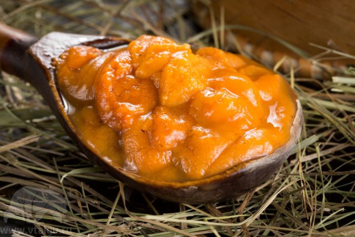На основе икры выпускается большое количество биологических добавок к пище. Если купить икру морского ежа, то можно самостоятельно приготовить два вида полезных настоек. Первая настойка на меду. Ее можно принимать внутрь в качестве общеукрепляющего гомеопатического средства и использовать в качестве омолаживающей маски для лица. Настойка на меду готовится следующим образом. Нужно взять икру морского ежа, предварительно очистив ее от панциря, промыть в теплой морской воде. Подготовить медовую воду, то есть смешать воду и мед в пропорциях семь к одному. Залить икру медовой водой и оставить на 4 дня в темном месте. По истечении этого времени можно принимать это прекрасное многофункциональное средство.