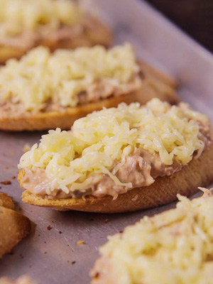 В нашем рецепте брускетты с тунцом в начинку дополнительно добавляется сыр, зелень и специи.