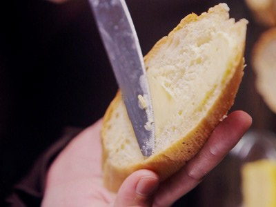 Намажьте каждый кусочек хлеба тонким слоем сливочного масла с обеих сторон.