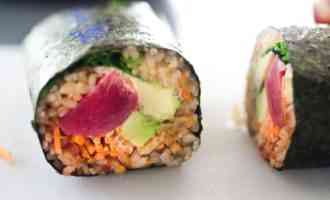 Тунец используется тот же, что и для суши. Как правило, это сырая свежая рыба, но если у вас не получится достать такую, то можно замариновать филе тунца.