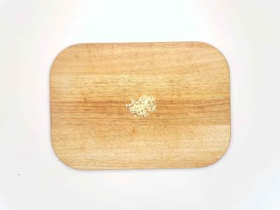 Включите духовку на 200 градусов. Поместите нагреваться в духовку пустой противень. Чеснок очистите от шелухи и измельчите удобным способом.
