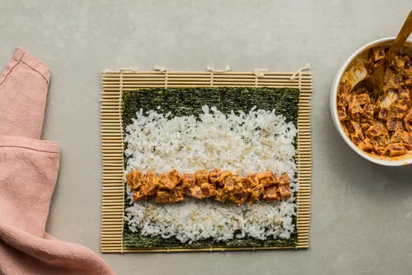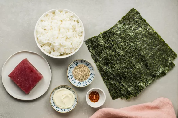 Подготовьте ингредиенты для острых роллов с тунцом.