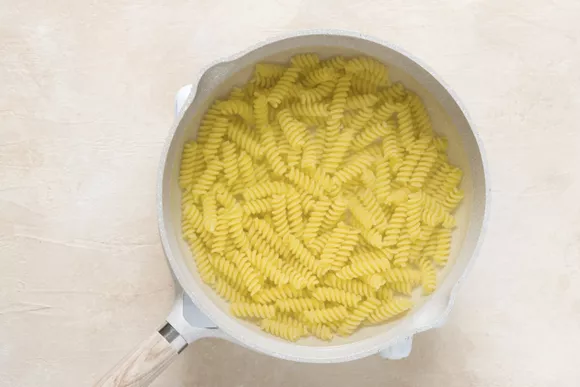 Отварите макароны согласно инструкции на упаковке в кипящей подсоленной воде.