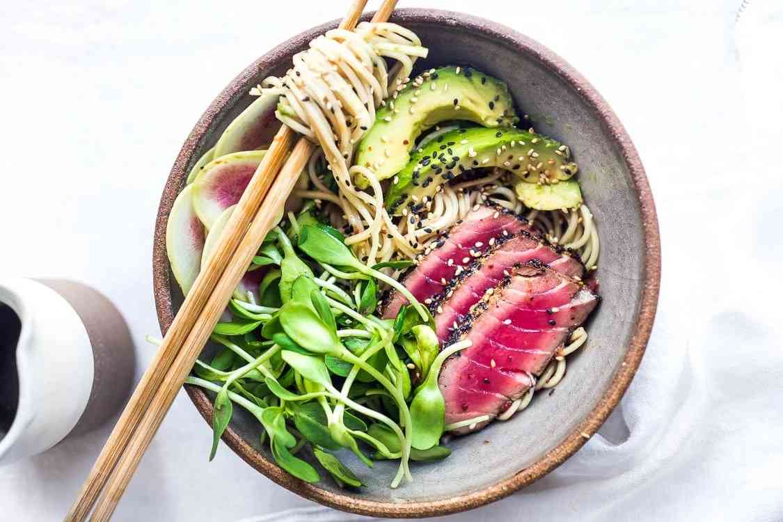 Собу можно заменить на рисовую лапшу или даже просто рис. Если вы хотите адаптировать блюдо для вегетарианцев, подавайте его с тофу вместо рыбы. Свежего тунца достать будет сложнее, но можно найти поставщиков продукции для суши-ресторанов.
