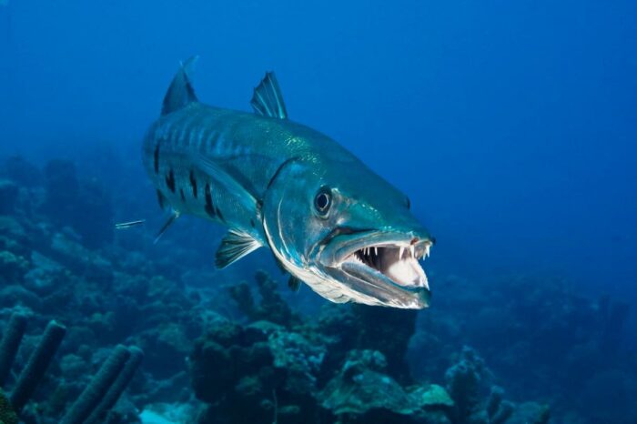 Барракуда – океанский тигр. Заслуживает звание самой хищной рыбы океана. Получила такое прозвище за свирепость. Вот уж кого стоит опасаться по-настоящему! Ее отличительная черта – мощная нижняя челюсть, выступающая за верхнюю. Нападает даже на людей. Половина пострадавших погибает от ран. По внешнему виду немного напоминает щуку. Хотя никакого родства между ними не прослеживается. Небольшой, в пределах 10 кг, вес и метровая длина тела не вызывают опасений. С трудом верится, что такая рыба опасный хищник. Однако, этот вид относится к стайным рыбам. Самая быстрая в океане. Скрыться от нее невозможно.