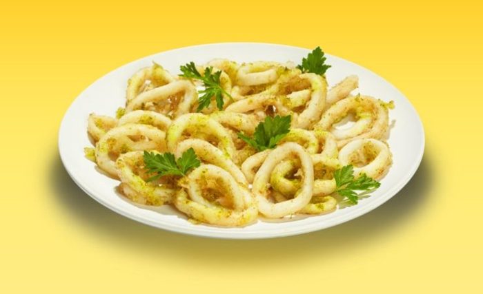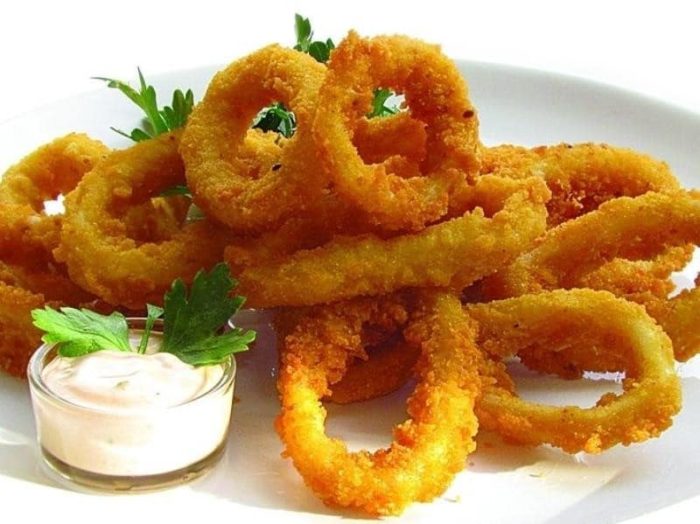 Кальмар — ценный морепродукт, который должен появляться в рационе каждого человека. Особой популярностью пользуется простейшая закуска — кольца кальмаров. В них нет холестерина, присутствует селен, белки, которые легко усваиваются и таурин, необходимый для организма.