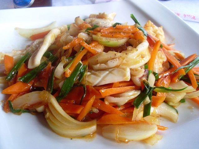 Рецепт подготовлен с соблюдением всех правил здорового питания. Кольца кальмара станут изюминкой этого кушанья.