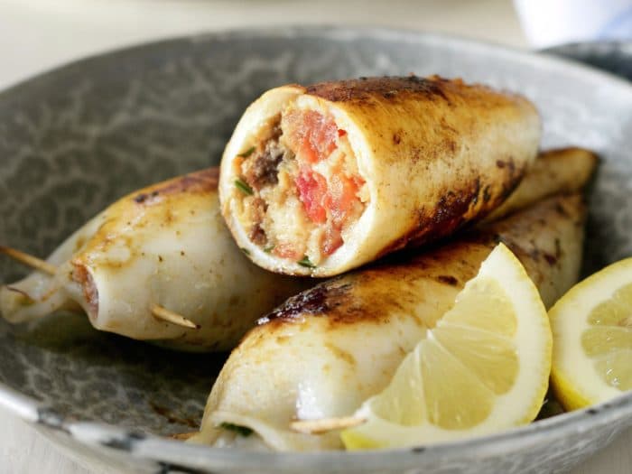 Этот рецепт приготовления фаршированных кальмаров полюбился многим кулинарам за его легкость и быстроту.