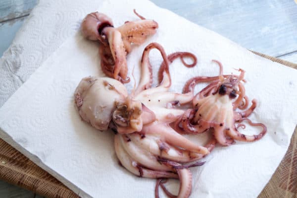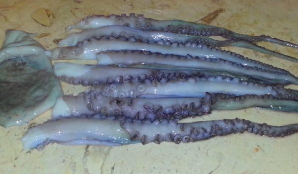 Для готовки предпочтительно покупать маленькие тушки осьминога, их мясо варится значительно быстрее и оно намного нежнее, чем мякоть крупной особи.