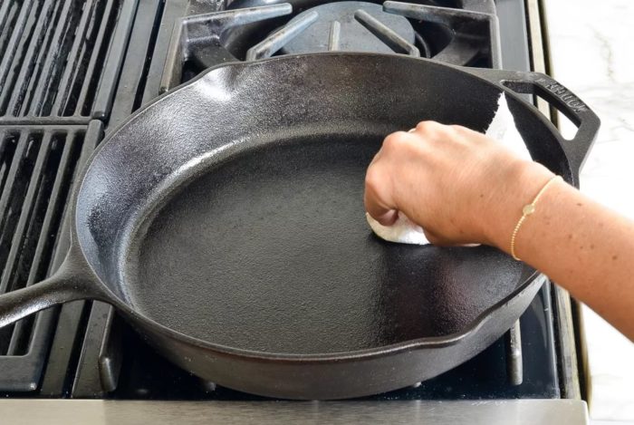 Подготовьте сковороду из чугуна или нержавейки, главное не использовать емкость с тефлоновым покрытием!