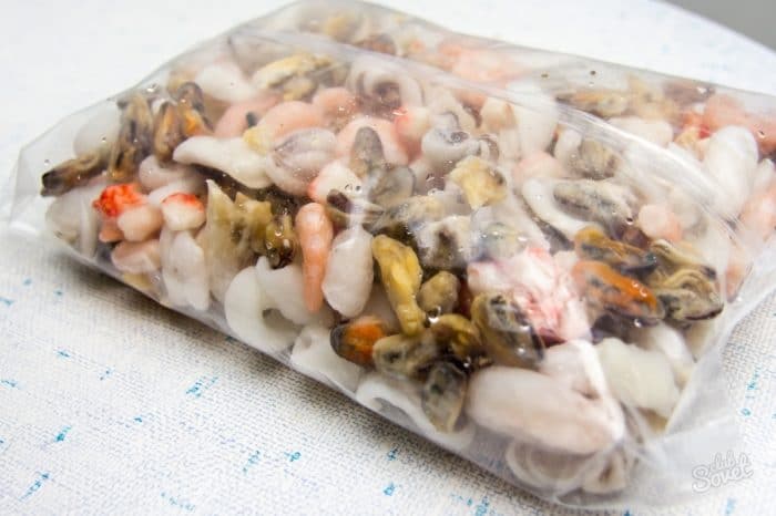 - Разморозьте морское ассорти, промойте водой и просушите.