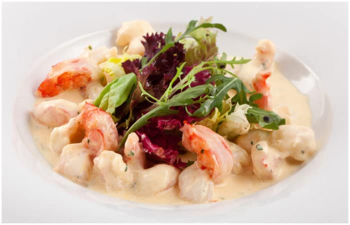 Мясо любит лук, рыба – лимон, морской коктейль предпочитает сливки. Молочный продукт не дает морскому коктейлю пересушиться, подчеркивая экзотичный вкус на выходе. Служит в этом сочетании в качестве соуса и полноценного партнера по блюду.