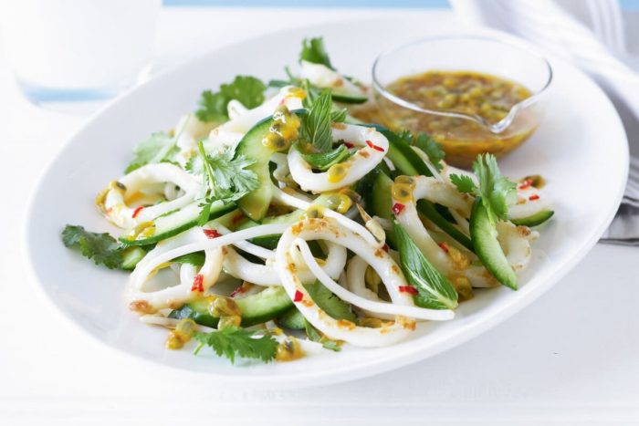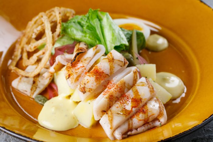 Особое место в кулинарии занимает классический рецепт салата со свежим кальмаром.