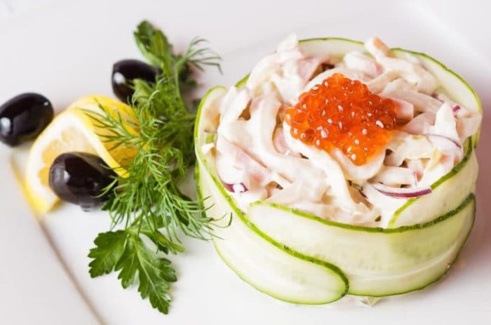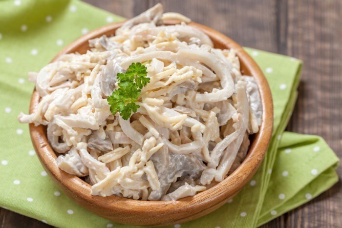 Как готовить вкусный салат из кальмара: