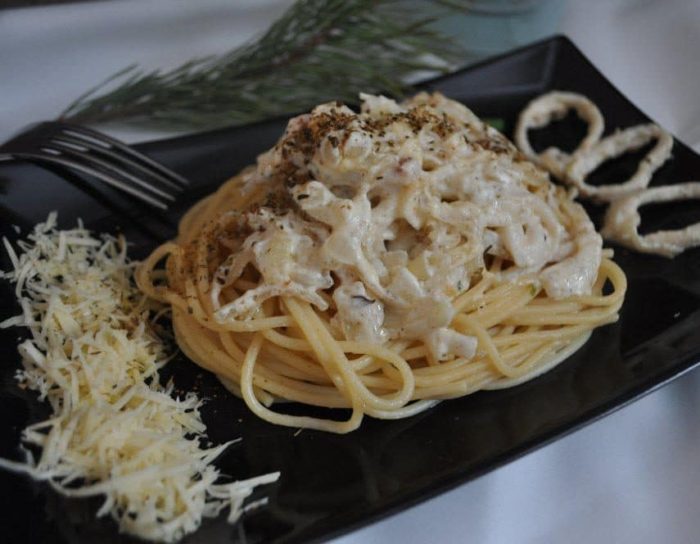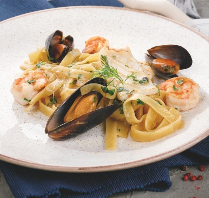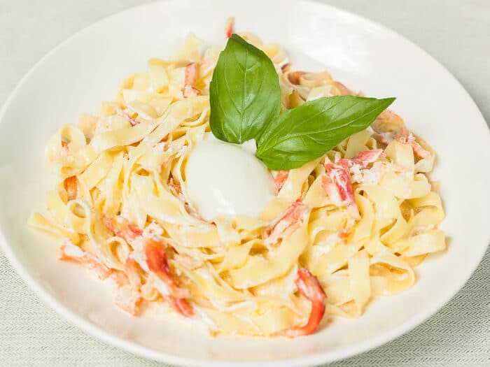 Это блюдо отличается богатым вкусом, приятным ароматом, поэтому он обязательно понравится любителям морепродуктов. Благодаря сливкам, паста становится мягкой, а морепродукт сочным. Для того, чтобы приготовить это блюдо на две персоны, по этому рецепту следует взять следующие продукты: