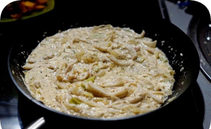 В результате таких простых действий, можно насладиться вкусным соусом к спагетти с кальмарами. Самое важное преимущество этого блюда заключается в том, что к нему не нужно подавать дополнительный соус, ведь кальмары в сметане – уже готовое блюдо.