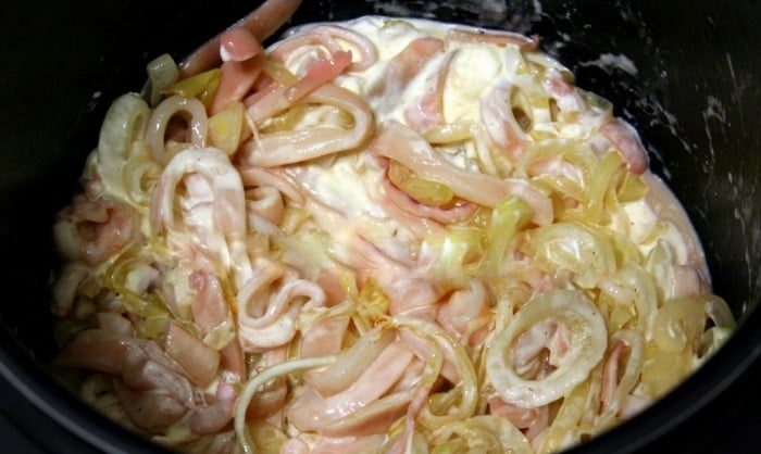 - Чтобы приготовить вкусные кальмары в сметане, их необходимо заранее обработать, а затем на 3 минуты опустить в кипящую воду.
