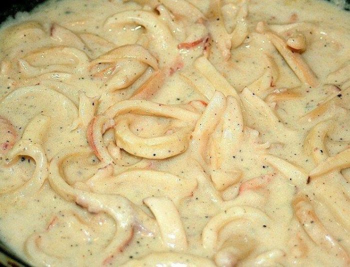 Как потушить дома кальмары в сметанном соусе, чтобы они получились по-настоящему вкусными, и слово таяли у вас во рту? Главное – это их тепловая обработка, занимающая около 4 минут.