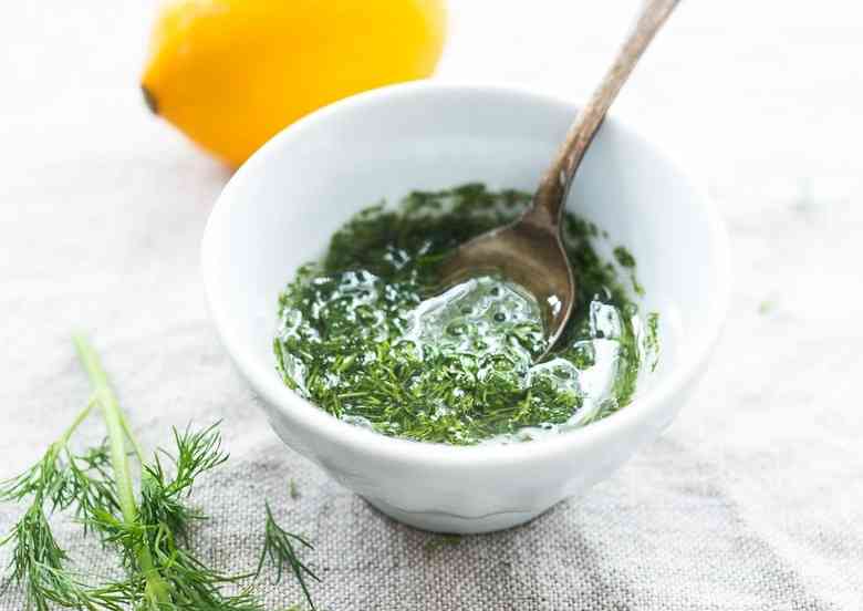 Приготовьте соус с лимоном и укропом, смешав ингредиенты в небольшой миске.