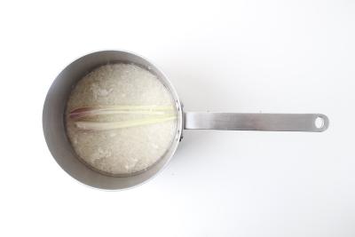 В кастрюлю поместите рис, внешнюю оболочку лемонграсса, 300 мл холодной воды. Поставьте на сильный огонь. Когда вода закипит, варите на самом маленьком огне 10-15 минут под крышкой, пока рис не впитает жидкость. После готовности держите под крышкой до подачи.