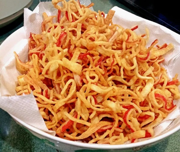 Выкладывайте готовые хрустящие полоски на блюдо, застеленное бумажными полотенцами, чтобы стек лишний жир. Альтернатива готовки чипсов из крабовых палочек во фритюре — в духовке. В этом случае их нужно выложить на противень и запекать при 180-190 градусах около 20 минут.