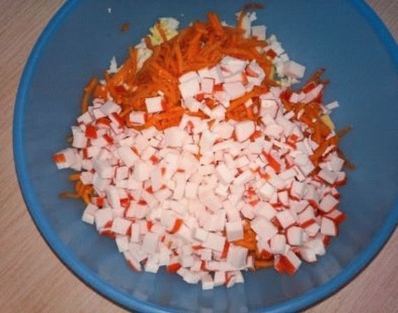 - Мясо краба или палочки – четверть килограмма;