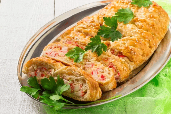 Крабовый пирог на слоенном тесте