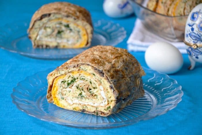 Нарезать на равные рулетики к столу.