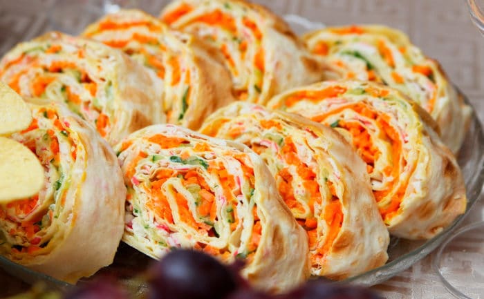 Палочки с имитацией вкуса краба – недорогой продукт, который продается в каждом магазине, мало кто знает, что из этого обыденного продовольственного товара, можно приготовить много разнообразных закусок для торжественного случая или просто на повседневный стол. Это легкие рецепты в приготовлении для каждого кулинара. Так как правильно и вкусненько приготовить рулет из лаваша с крабовыми палочками? Представляем разнообразные рецепты рулета с крабовым мясом или его имитацией в лаваше с пошаговым описанием процесса готовки и списком продуктов, а также можно посмотреть фото и видео готового блюда.