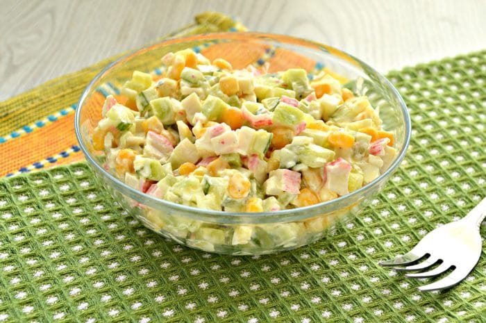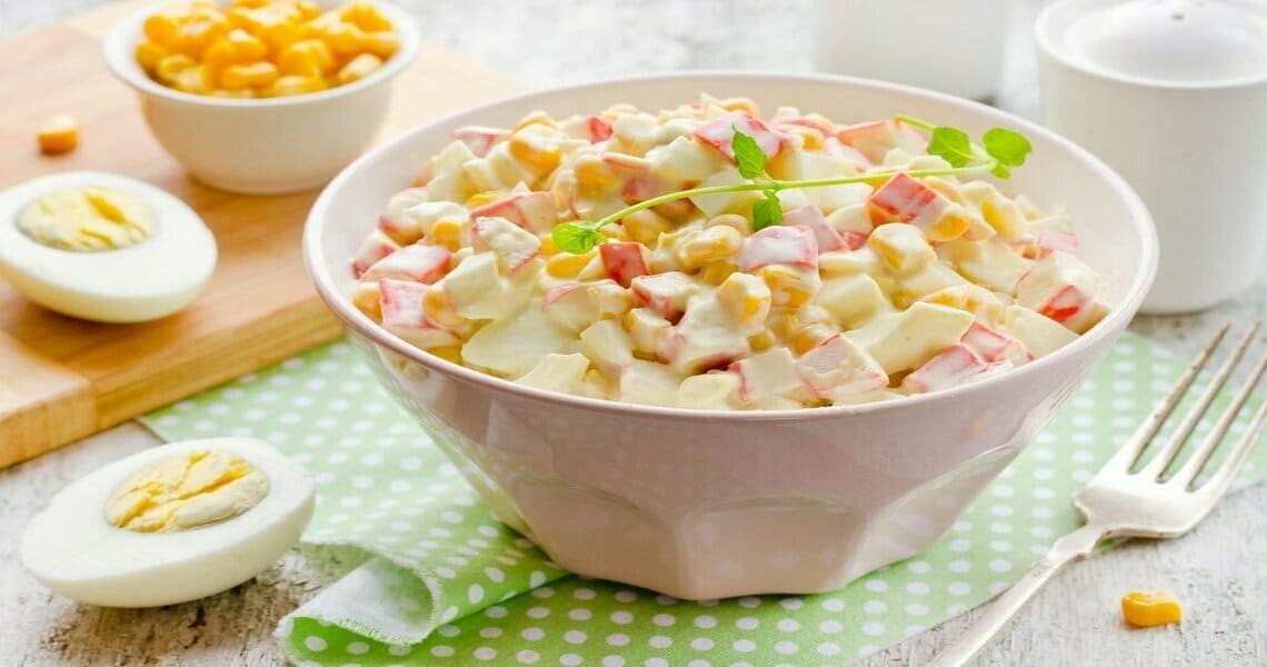 Этот рецепт является лучшим по вкусу, так как входящие в состав кукурузные зерна просто идеально сочетаются с сочным мясом краба. Основные компоненты: