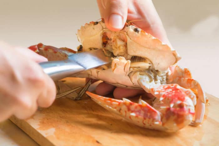 Краб выбран. Теперь нужно подготовить его – сварить целиком или разделать. С живыми крабами готовка затруднительна. Поэтому необходимо ввести его в сонное состояние, погрузив в воду, либо поместив в морозильную камеру. Через 10-15 минут можно приступить к процедуре.