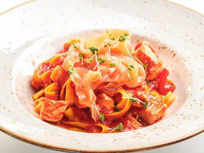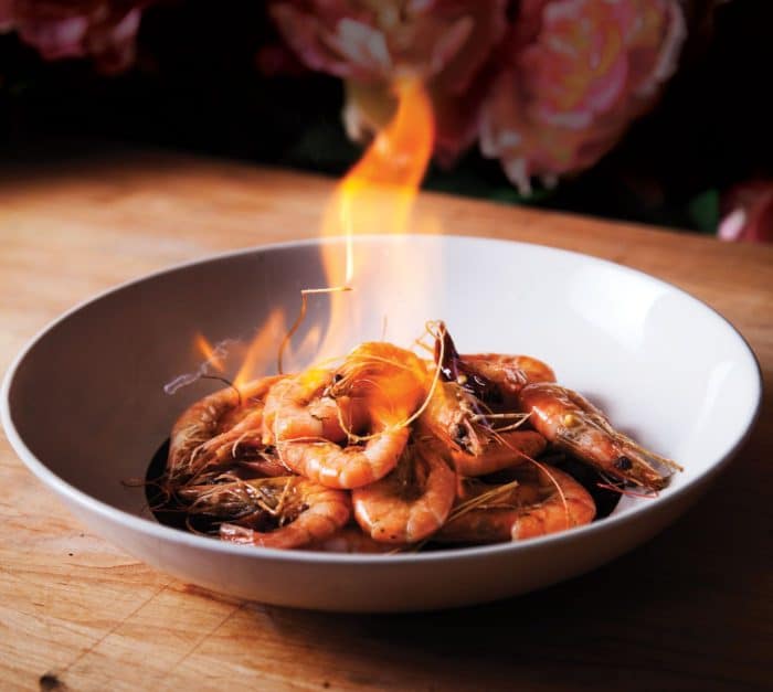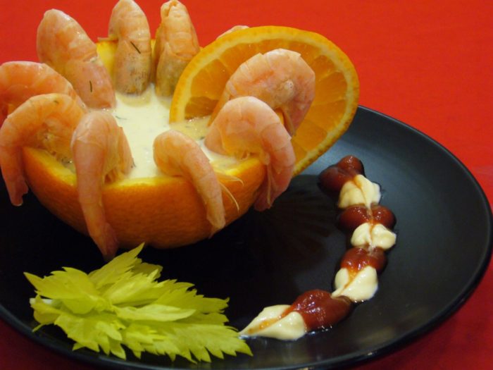 Оригинальной подачей данных морепродуктов станет фламбе.