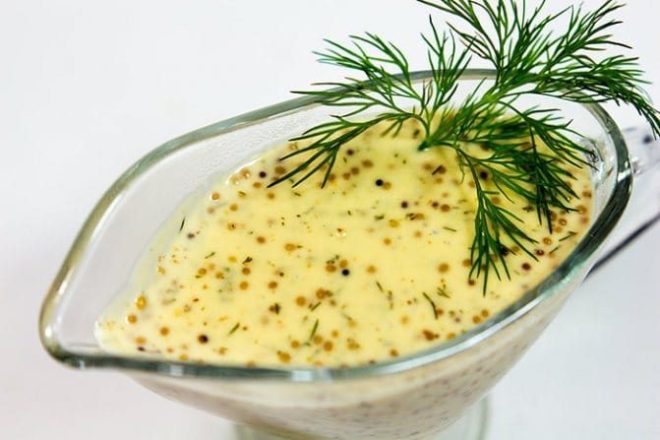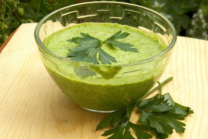 Соус «Зеленый». Нужно мелко нарезать пучок укропа, затем добавить его в половину стакана майонеза, положить туда же столовую ложку лимонного сока и отправить измельченные 2 зубчика чеснока. Все перемешать. Соус имеет остринку чеснока и аромат укропа.