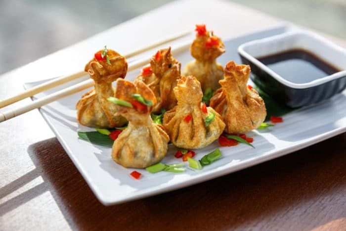 Очень необычным и интересным обедом могут стать вонтоны с креветками.