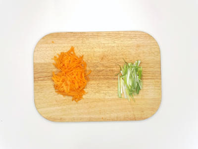 Морковь почистите и натрите на крупной терке. Зеленый лук измельчите.