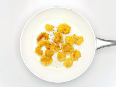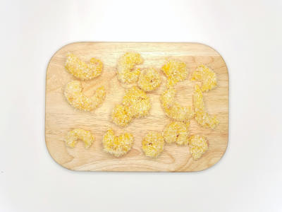 Креветки промойте и обсушите бумажными полотенцами. Обваляйте каждую креветку сначала в муке, затем окуните в яйцо, потом полностью покройте сухарями.