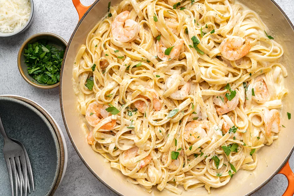 Немногие блюда могут быть столь же изысканными, как фетучини с креветками в сливочном соусе.