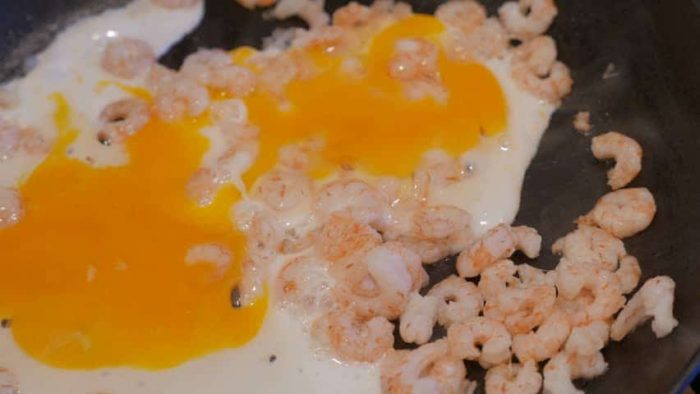 - Разморозить и почистить креветки.
