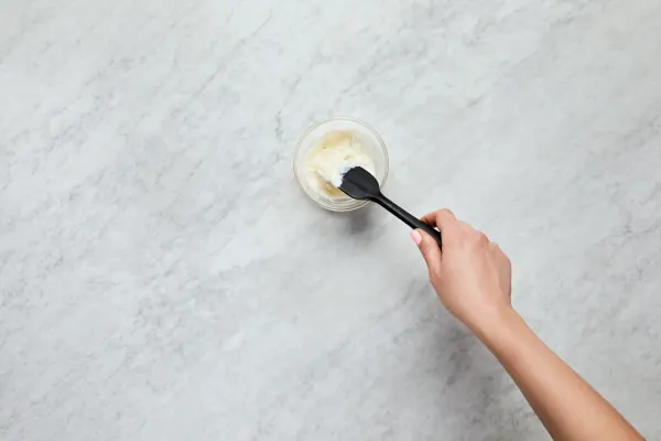 Тем временем в небольшой миске смешайте майонез и оставшийся чеснок. Добавляйте воду по 1 чайной ложке за раз, пока смесь не приобретет консистенцию жидкого соуса айоли. Приправьте солью и перцем.