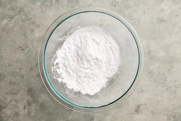 Для приготовления теста в глубокой миске смешайте два вида крахмала и соль.