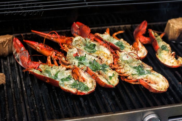 - Замаринованные лангустины выложить на решетку, накрыть крышкой и плотно ее закрепить. Готовить на углях, на каждую сторону по 3-4 мин.