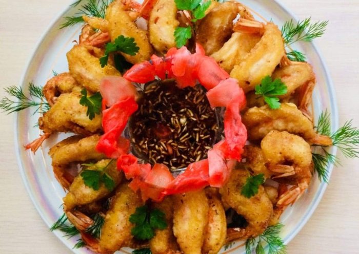 - Для приготовления темпуры нужно смешать все ингредиенты в одной миске, тщательно перемешивать до тех пор, пока не образуется однородная масса. Затем разогреть глубокую сковороду, каждый очищенный лангустин окунается в кляр, затем выкладывается на сковороду, обжаривается с двух сторон до появления золотистых румян.