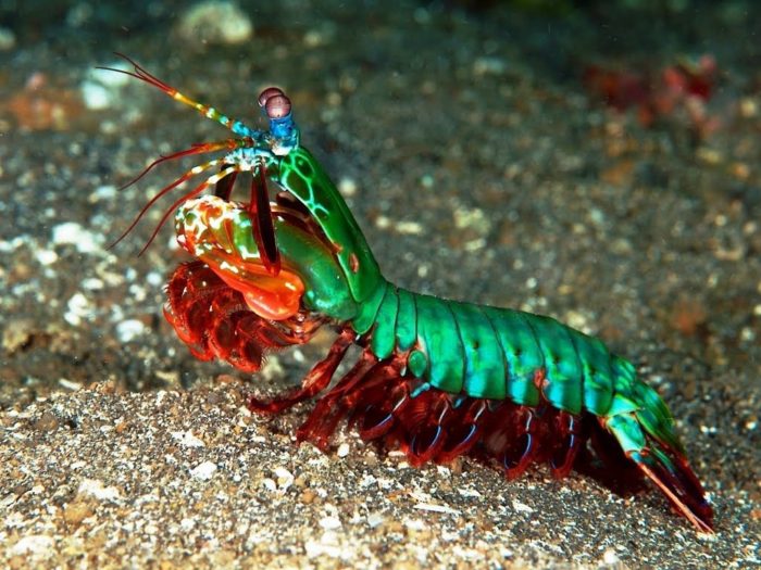 Еще одна большая креветка, которая по размерам занимает второе место после павлиновой. Длина ее туловища достигает 25 – 30 см. Этот вид креветки ученые начали изучать совсем недавно, поэтому о нем пока мало информации.
