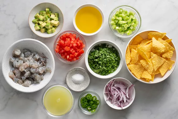 Подготовьте ингредиенты для севиче из креветок.