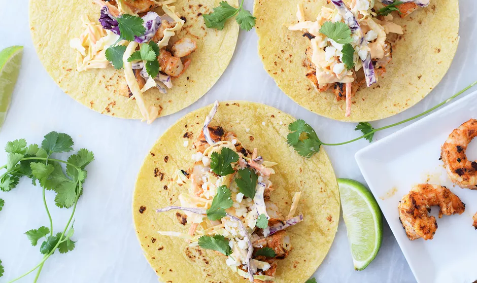 - Если вы готовили креветки на гриле, отложите несколько штук для этого рецепта. Капустный салат также можно сделать заранее. Тако вкусны и горячими, и холодными, и комнатной температуры!