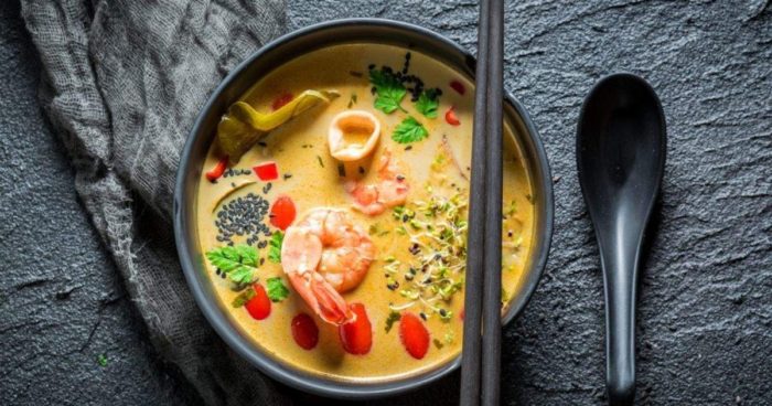 Опишем еще один рецепт том яма с креветками с добавлением сливок. Здесь представлен нежнейший вариант тайского блюда, который точно понравится домашним.
