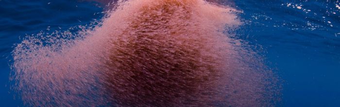 Криль всегда собирается в огромные стаи, которые порой сбиваются настолько плотно, что покрывают водную поверхность и выглядят, словно багровый ковер.
